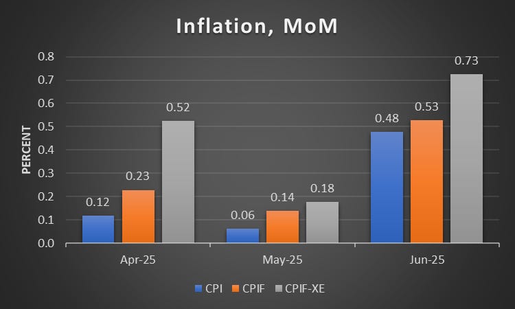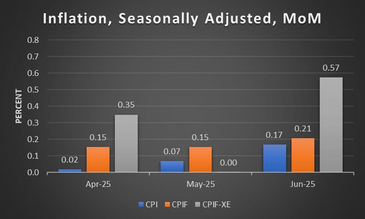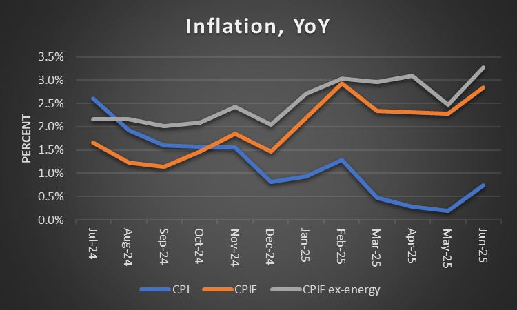 The graph below shows that since September 2024, CPIF and CPIF-XE have been edging up, even as headline CPI inflation has fallen.
